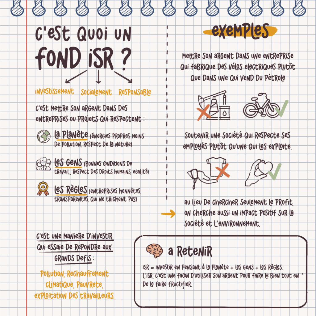 Un fonds ISR, c’est un placement qui te permet de faire fructifier ton argent tout en ayant un impact positif (ou du moins moins négatif) sur la planète et la société.