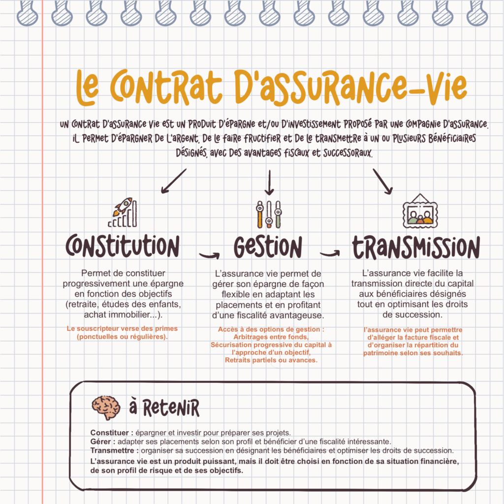 Elle vous permet d’épargner à votre rythme, de faire fructifier votre capital dans le temps et, cerise sur le gâteau 🍒, de transmettre ce que vous avez construit à vos proches dans les meilleures conditions.